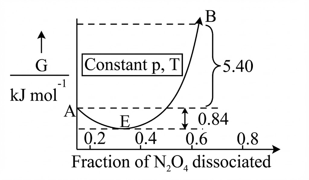 N2O4⇌2NO2, graph is plotted as shown below. Identify correct statements.
